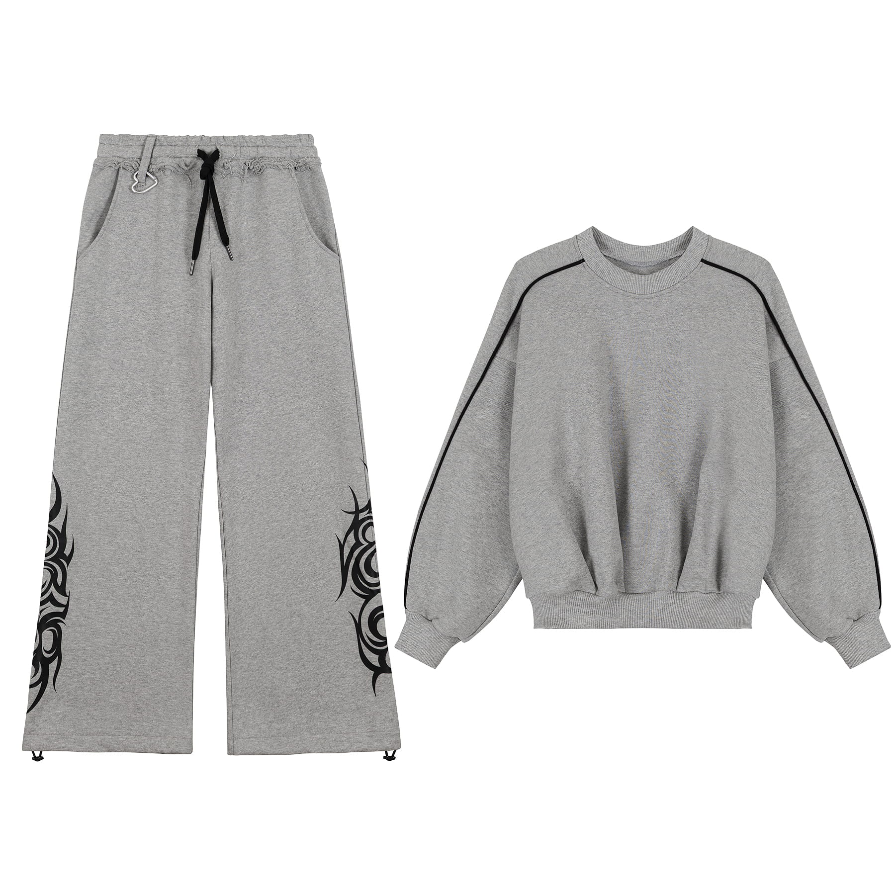 KOMPLET DRESOWY W KOLORZE SZARYM - Hoodie + Spodnie Dresowe