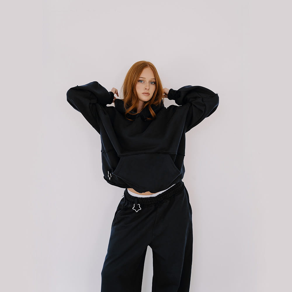 KOMPLET DRESOWY W KOLORZE CZARNYM - Hoodie + Spodnie Dresowe