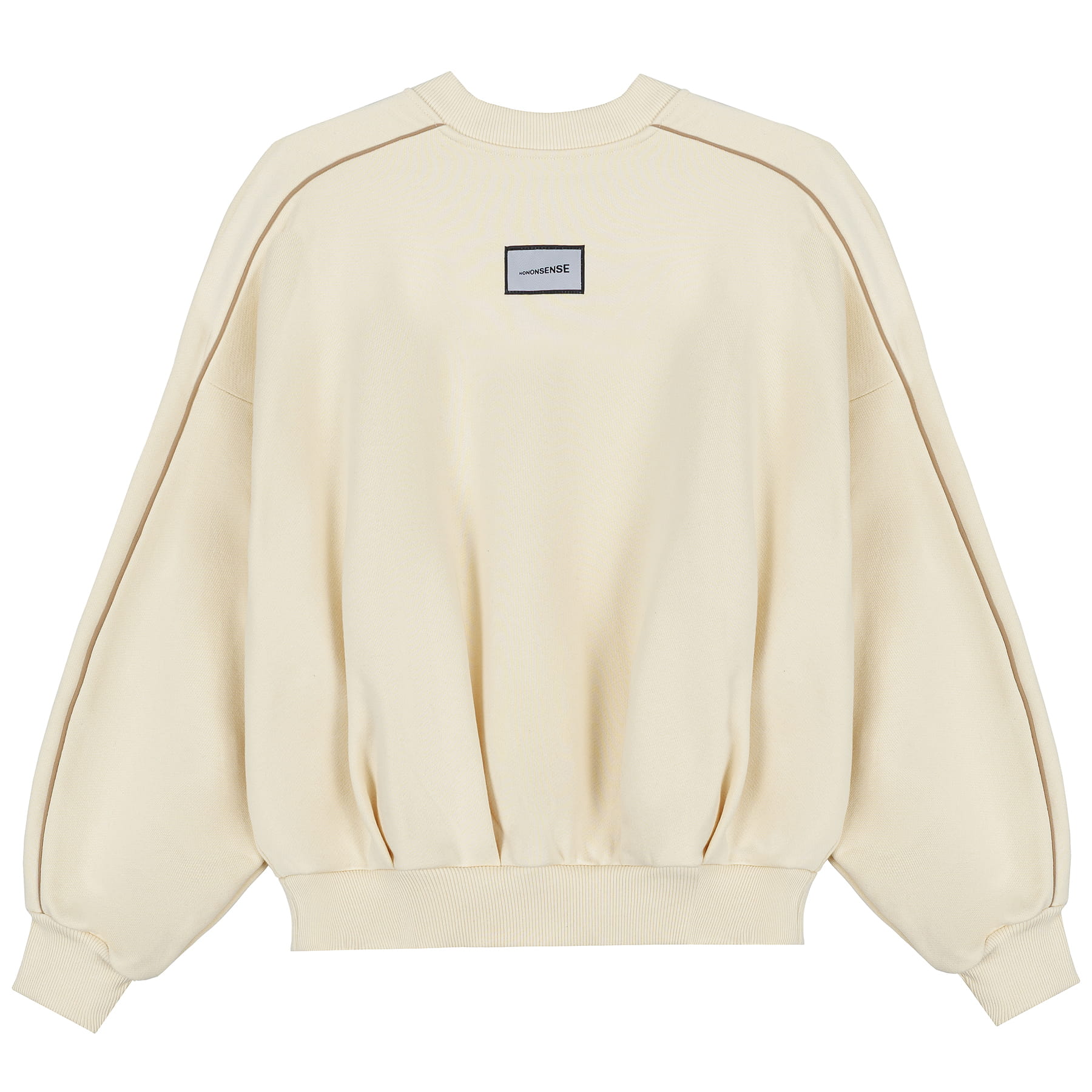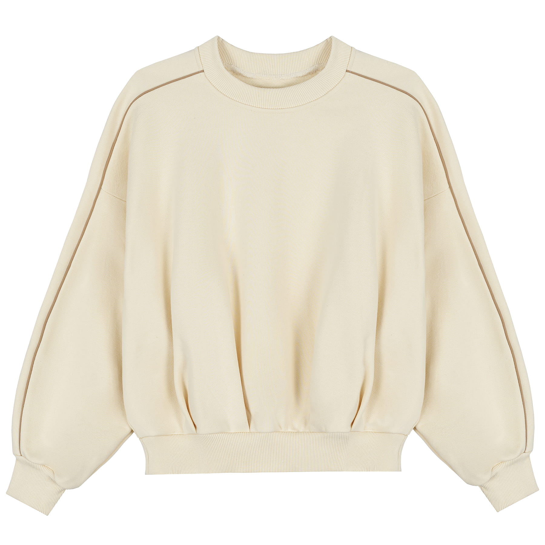 Minimalistyczna bluza o nowoczesnej formie w jasnym, kremowym odcieniu Ecru Cloud. Subtelna wszyta bawełniana wypustka prowadząca wzdłuż rękawów podkreśla konstrukcję projektu i nadaje mu czysty, dopracowany charakter.