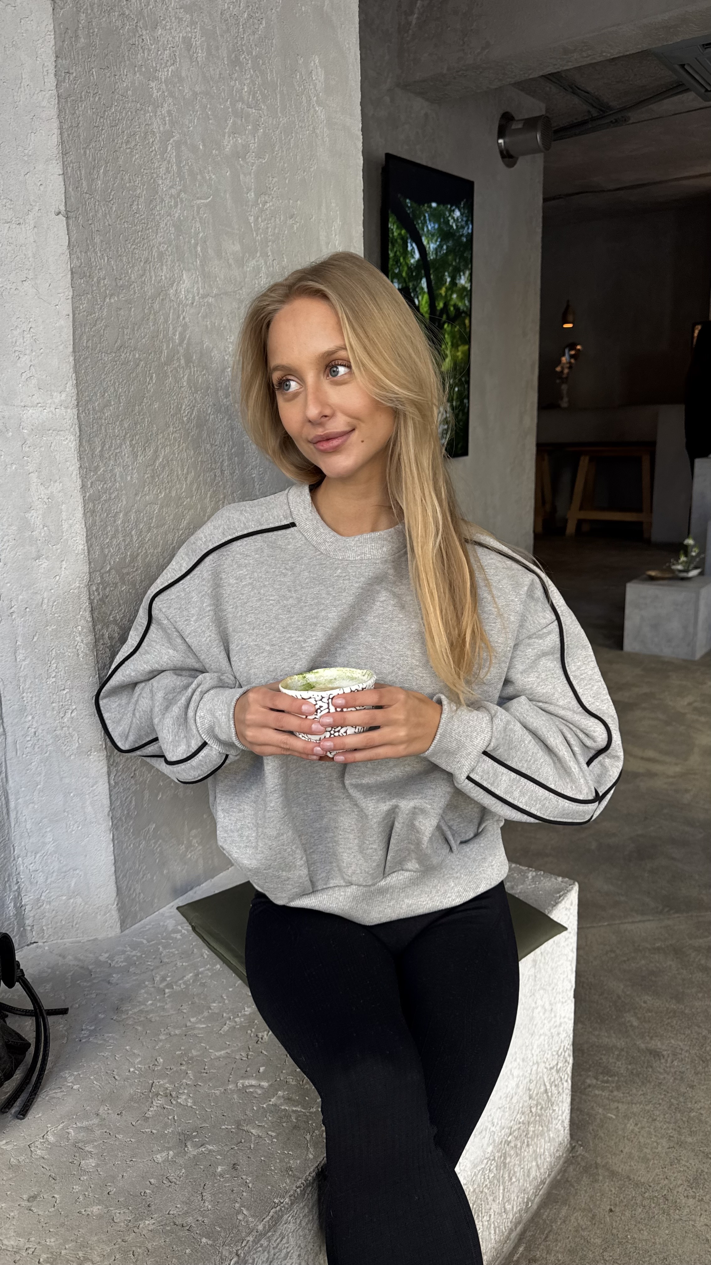 Minimalistyczna bluza o nowoczesnej, miejskiej formie w jasnoszarym odcieniu Grey Cloud. Charakterystyczna wszyta bawełniana wypustka prowadząca wzdłuż rękawów podkreśla konstrukcję projektu i nadaje mu wyrazisty, ale nadal subtelny charakter.