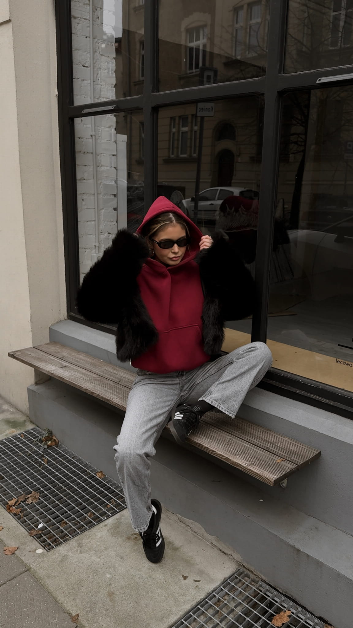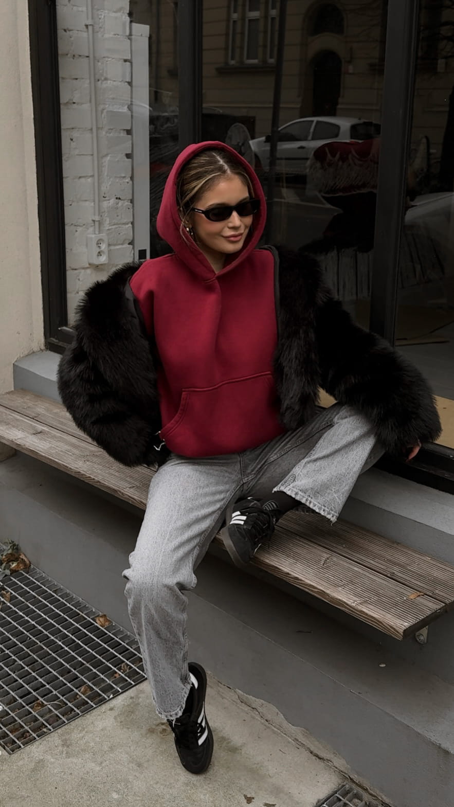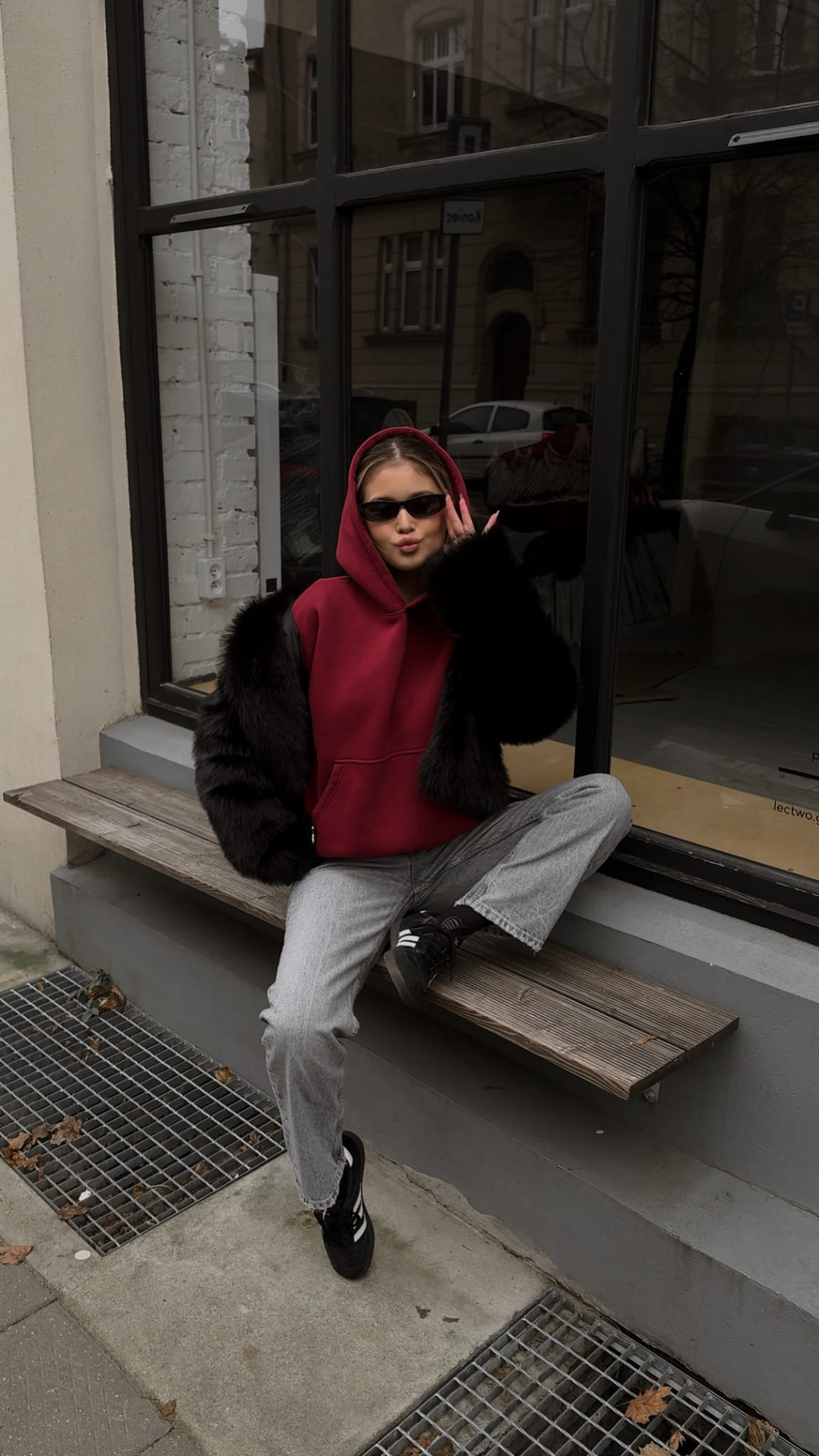 - Ocieplana oversize w kolorze głębokiego burgundu. Miękka, gruba i mega ciepła – idealna na chłodne dni. Luźny krój zapewnia wygodę i streetwearowy look. Must-have tego sezonu.