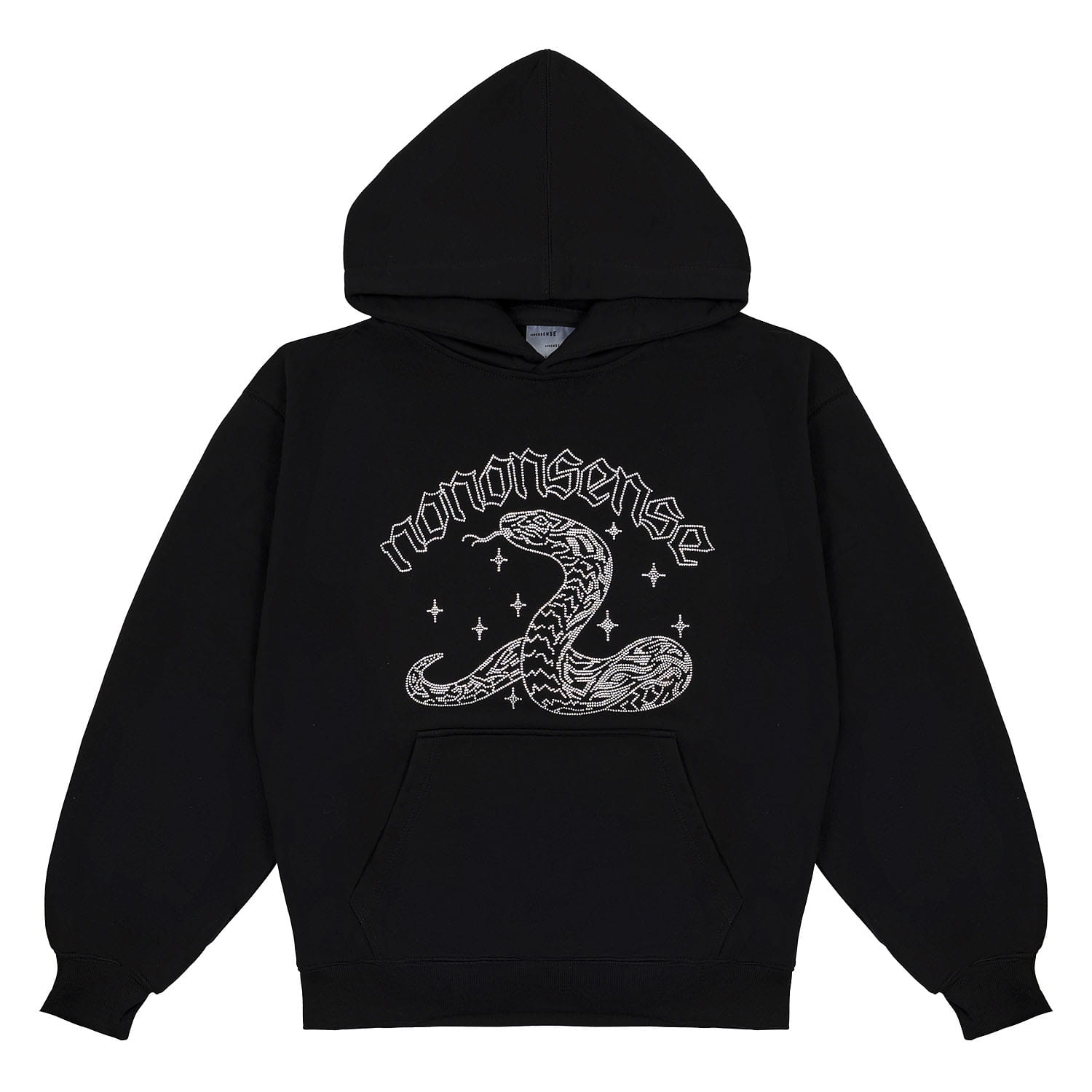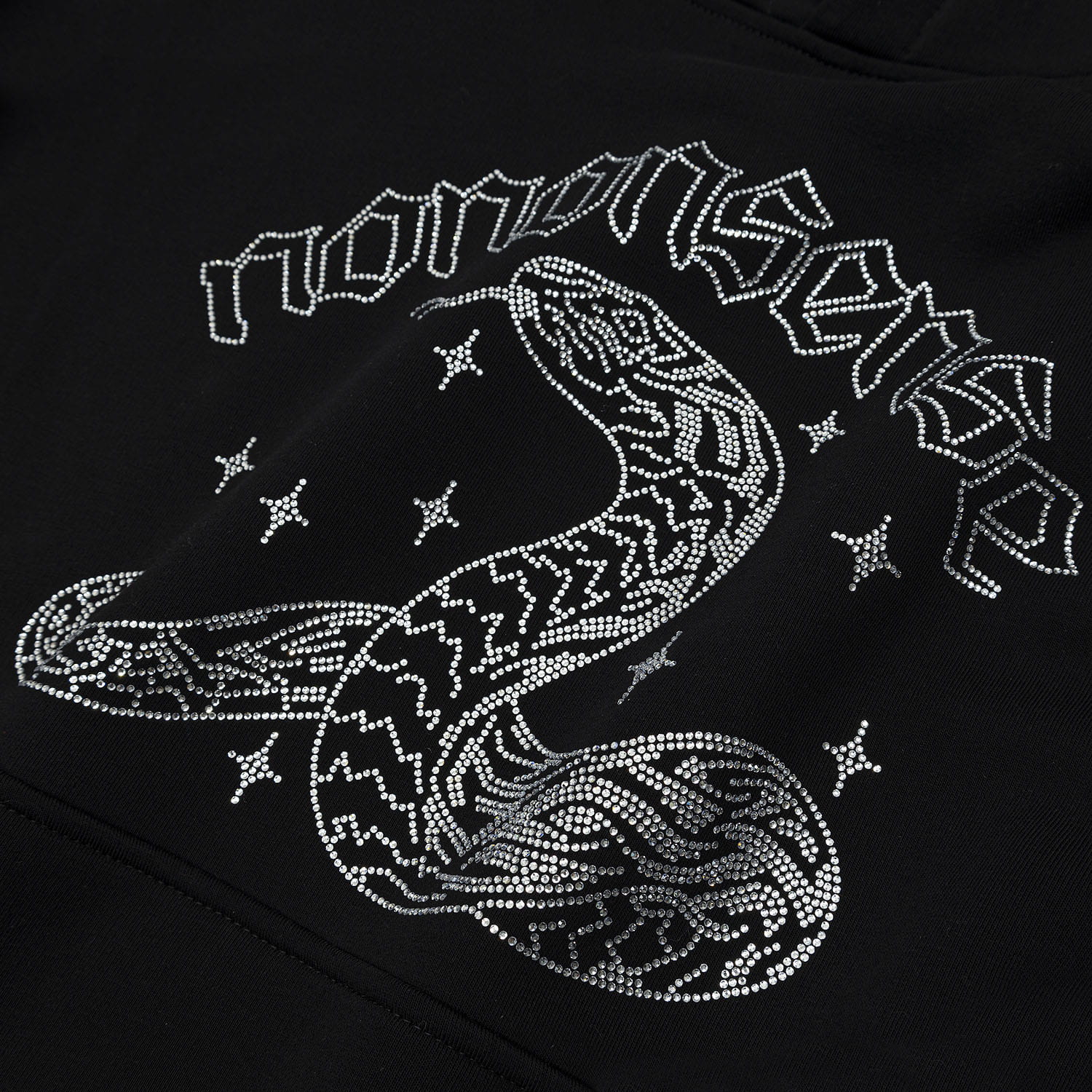 Bluza ocieplona z efektowną aplikacją motyla z cyrkoniii.Miękka,ciepła i wygodna-idealna na chłodniejsze dni.Stylowy akcent,który wtróżnia każdą stylizację. NONONSENSE SNAKE HOODIE- BLUZA Z KRYSZTAŁKAMI