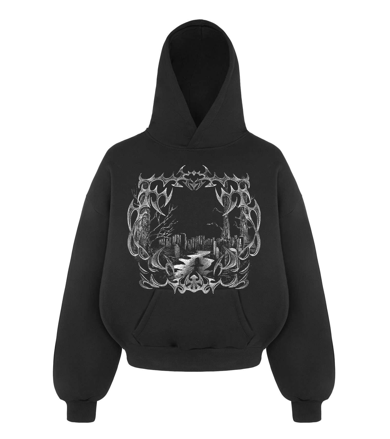 Czarna Bluza Oversize CEMENTERY HOODIE OCIEPLONA
