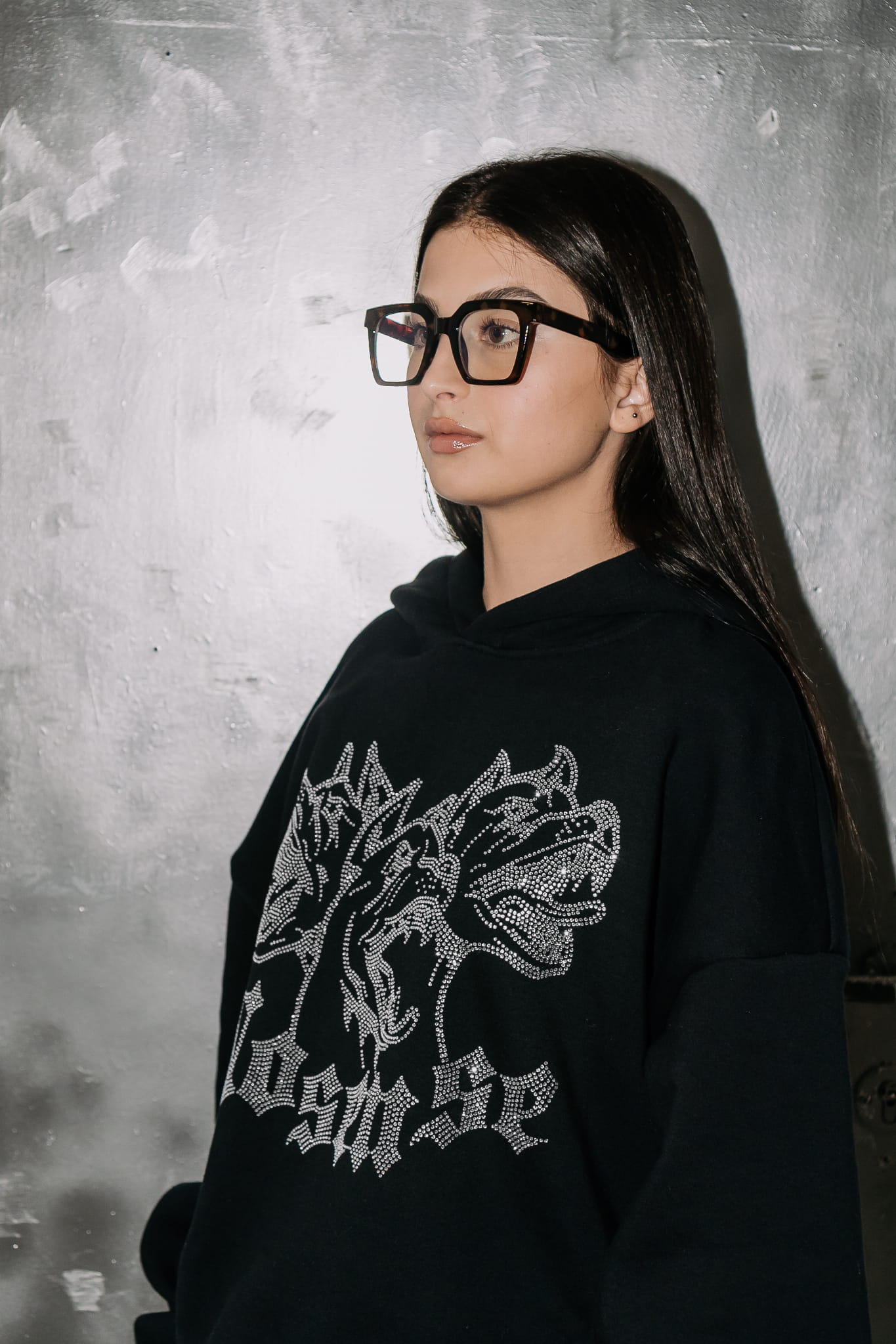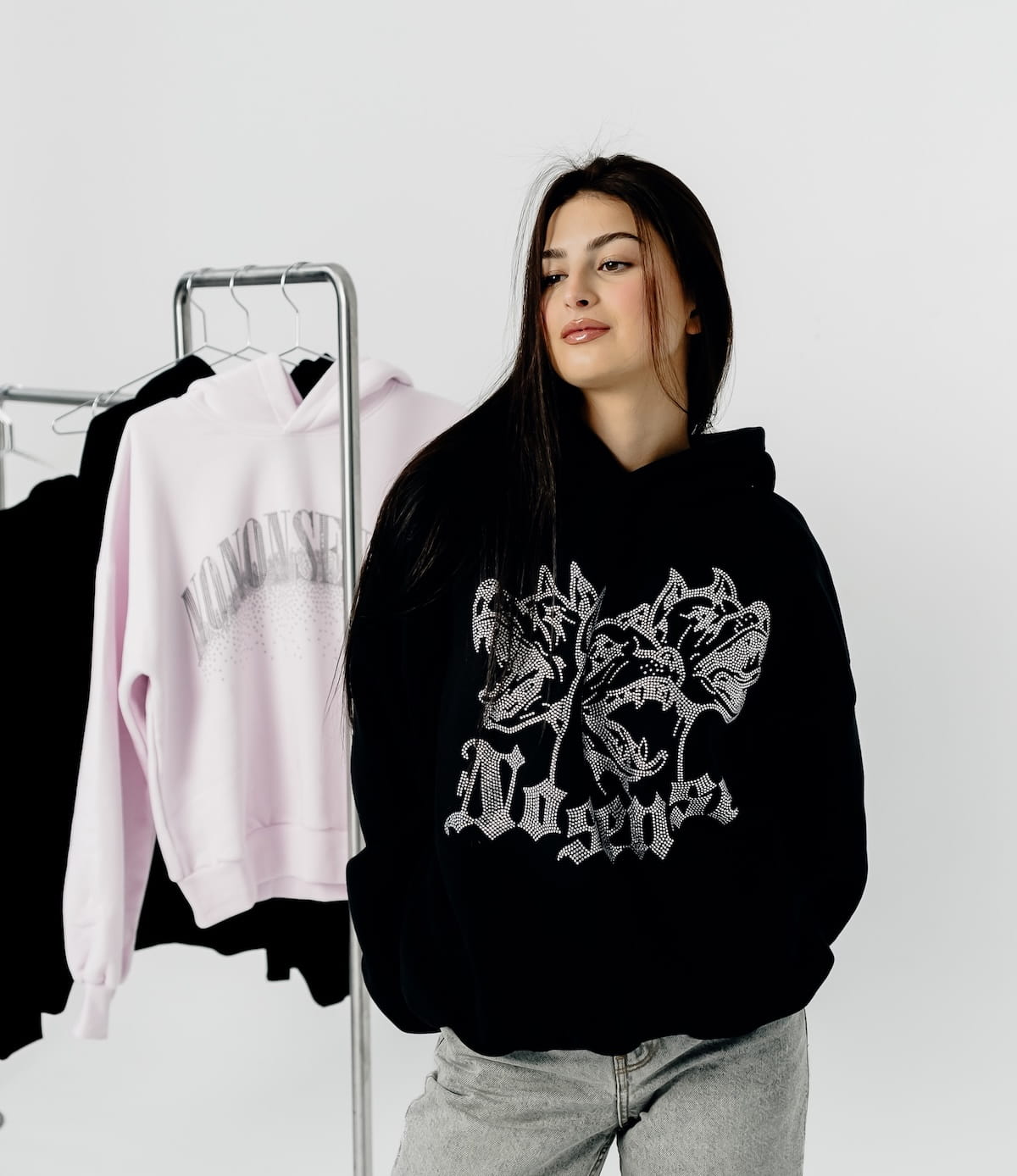 NONONSENSE DOG HOODIE BLACK - BLUZA Z KRYSZTAŁKAMI