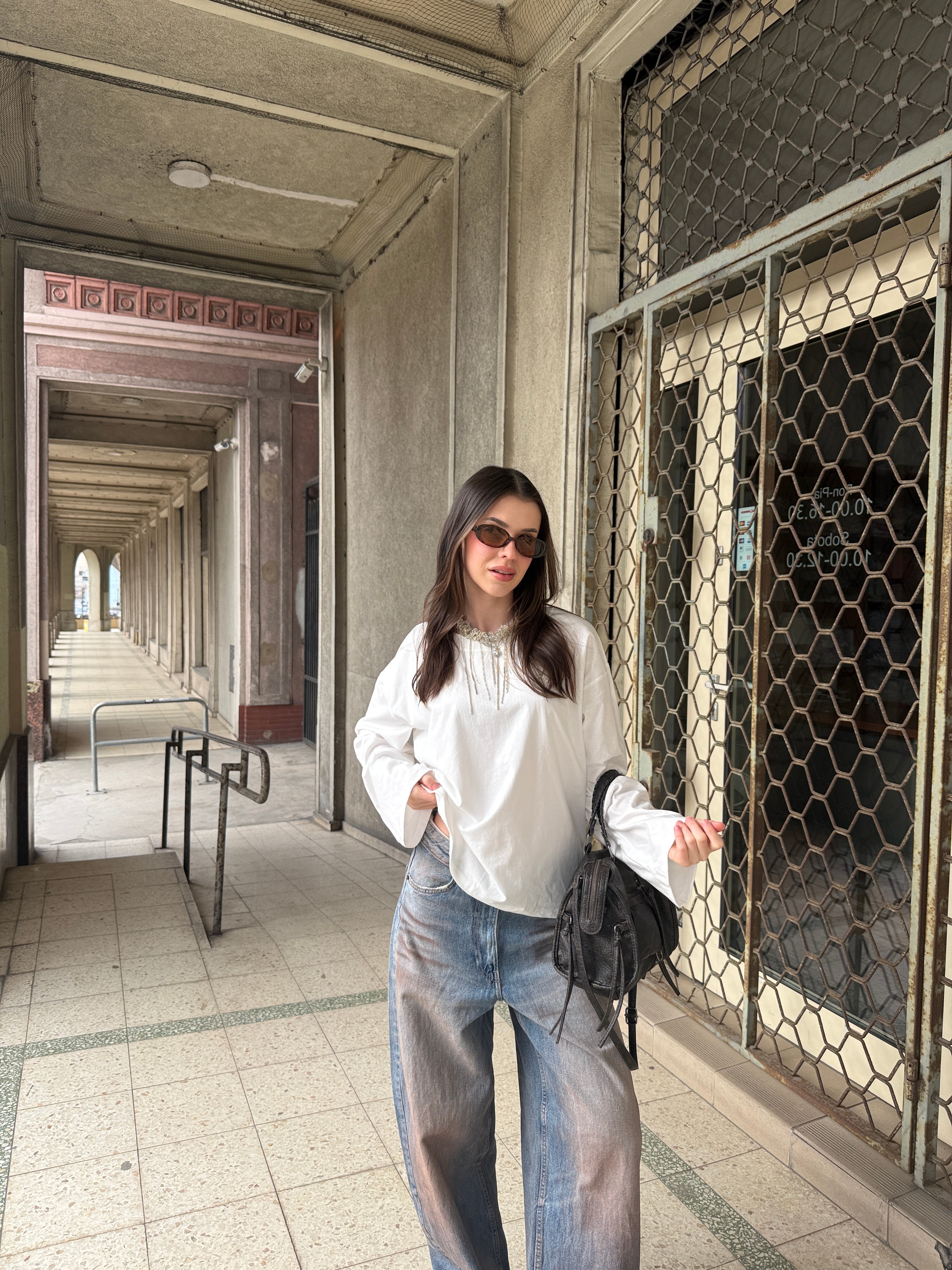 BASIC LONGSLEEVE WHITE -to czysta baza, która zostaje w szafie na długo. Martyna na na sobie rozmiar S/M WYMIARY – BASIC LONGSLEEVE